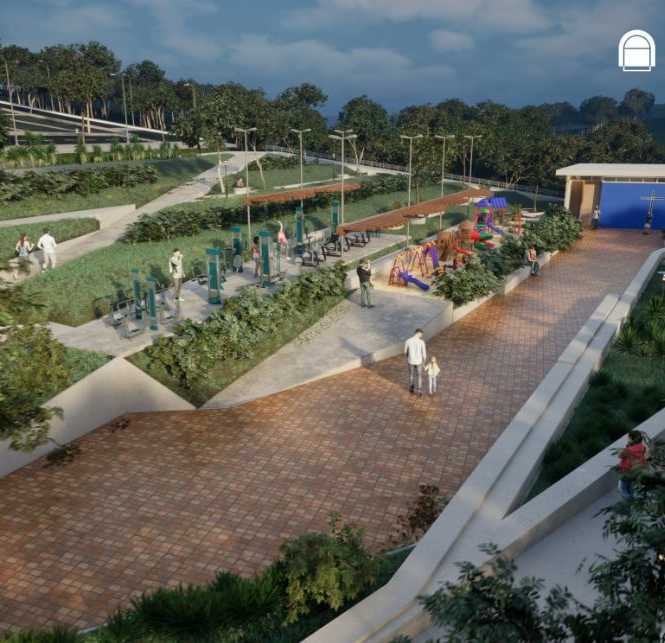 • Parque cívico com aproximadamente 12 mil m², dotado de diversos aparelhos para lazer, atividade física e contemplação.